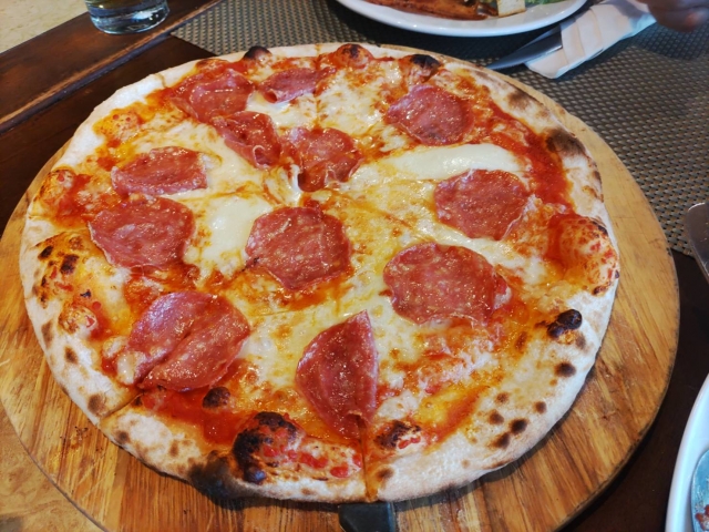 サラミとオリーブのピザ風